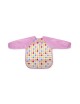 Babero de la marca Interbaby con mangas. Color rosa con lunares de colores. En la parte delantera lleva un bolsillo. Cierre en el cuello con velcro. Se limpia fácilmente con un paño húmedo.