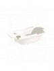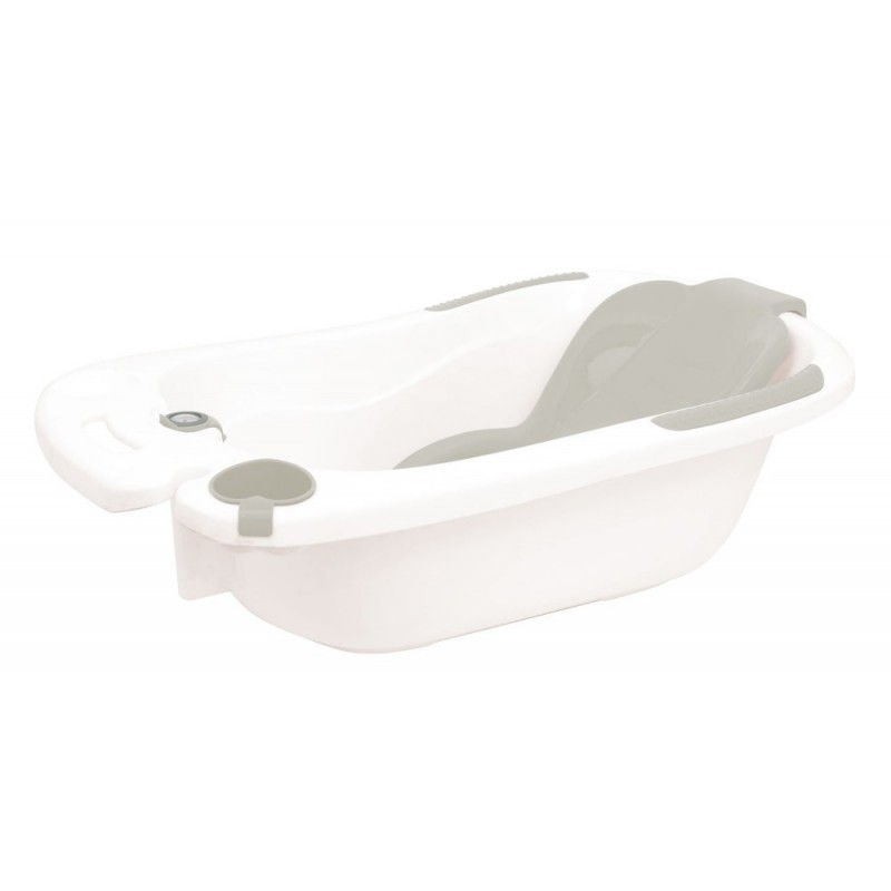 Cubeta con apoyos de goma antideslizantes en los laterales. Departamento para los productos de higiene y cacito para lavar la cabeza. Hamaca anatómica extraíble con ventosas antideslizantes. Termómetro para calcular la temperatura del agua. Práctico tubo de drenaje para eliminar el agua. Se puede utilizar sola con su pie de metal (no incluido). Medidas. 23x52x88cm. Color blanco con accesorios en rosa.