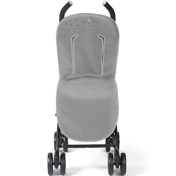 Colchoneta universal para silla, de la marca Uzturre colección Mafalda. Las fundas para silla de Uzturre son reversibles, ésta colección presenta una cara con un precioso tejido de plumitas estampadas con brillos metalizados. La otra cara es de piqué liso "class" sin estampado color gris. Uzturre diseña y fabrica 100% en España, con tejidos suaves, ecológicos y fibras naturales.