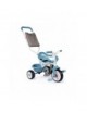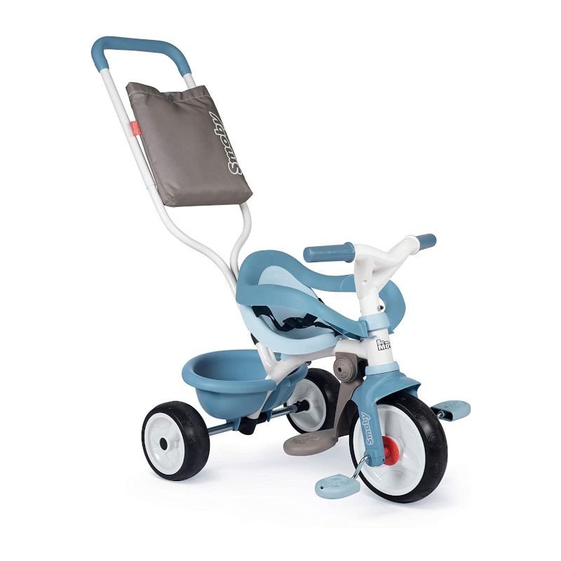 Triciclo progresivo para niños de 10 meses a 3 años. Seguridad: cuadro metálico, reposapiés retráctil, cinturón de seguridad y barra antivuelco, sistema de rueda libre para evitar que los pedales giren cuando el padre está empujando el triciclo, sistema de bloqueo del manillar para evitar que el niño interfiera en la dirección cuando el padre está dirigiendo. Confort: Ruedas blandas y silenciosas, gran asa para los padres desmontable con 3 niveles de altura, bolsa, asiento ergonómico y ajustable (2 posiciones), pedales antideslizantes. Certificado de calidad GS de productos de puericultura. Fabricado en España. Medida: alto 59.8 cm x largo 24 cm x ancho 44 cm.